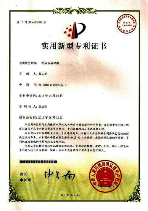 專(zhuān)利證書(shū)(破碎機(jī))